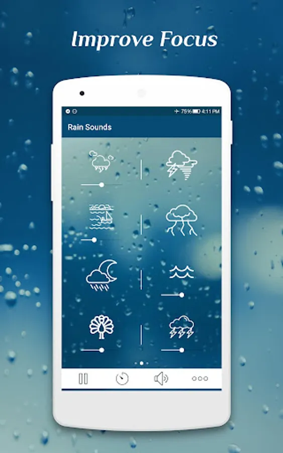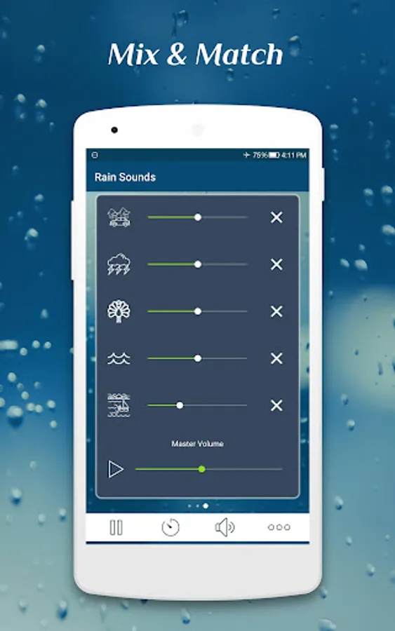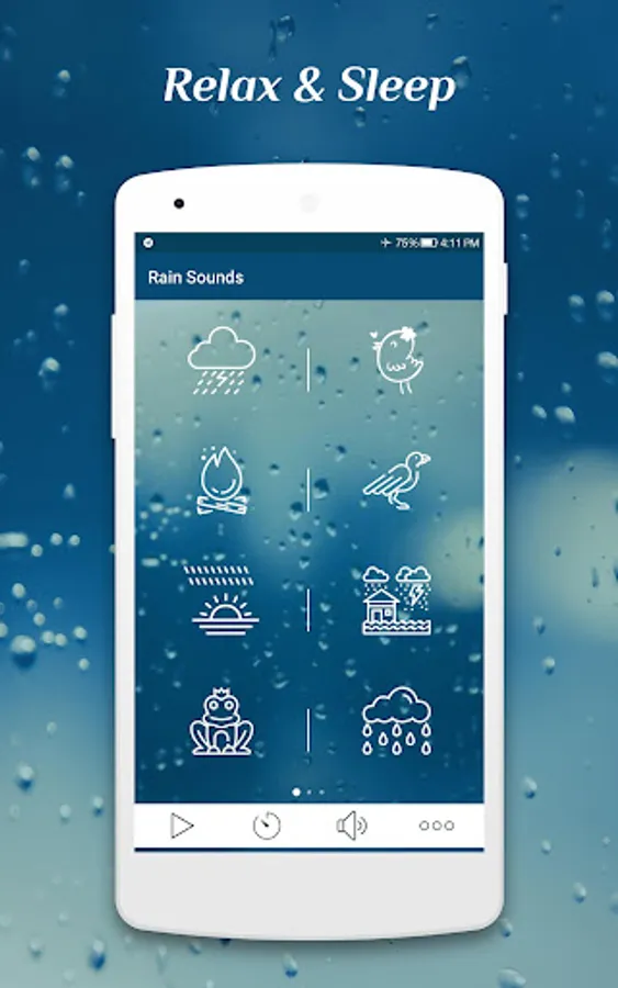 Prepare yourself for a truly unique experience! Find yourself in the middle of a thunderstorm, exercise control over thunders and lightnings, make your rainy soundscape just with a simple touch, set a sleep timer and let the rain wash your soul.