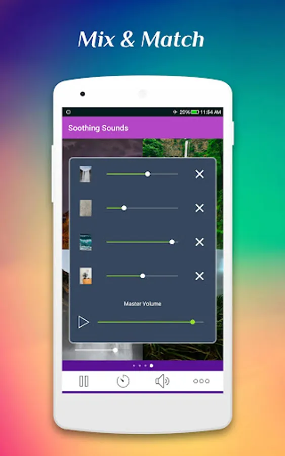 You can choose from different types of rain, nature sounds, city sounds, white noise or instruments. Play your favorite sound mixes as you like.