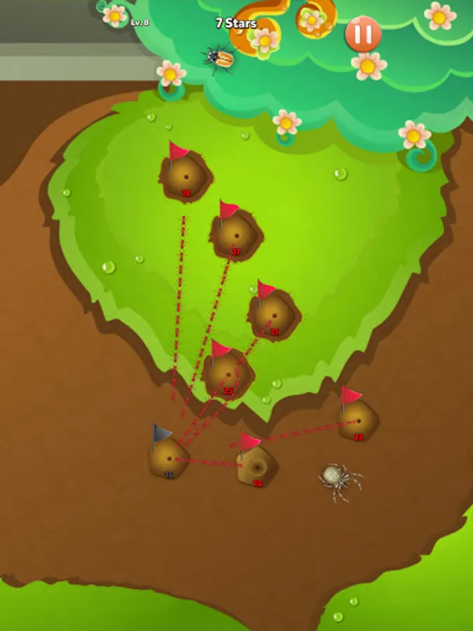 Draw a line from source hive to destinate hive so that your ant soldiers can move from here to there, to destroy other ants.