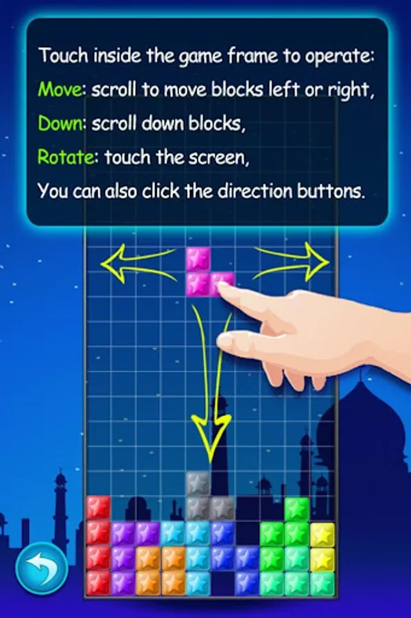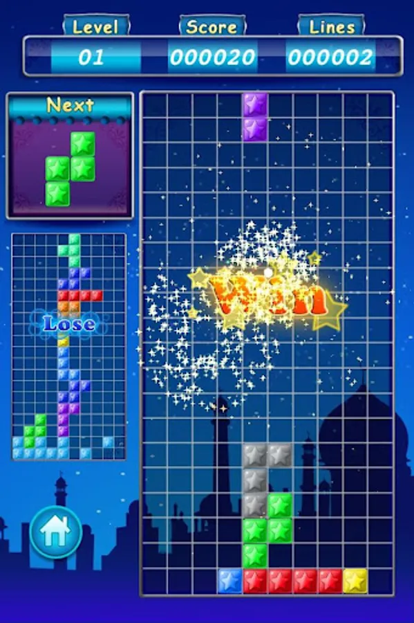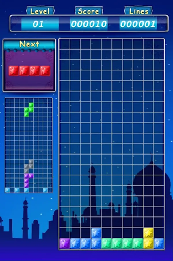 Here we use polyominoes. All elements are combinded from 1 to 5 grids, each with different color. But for Copy Right issues, we remove all 4 grids as well as keeping the fun to play it.