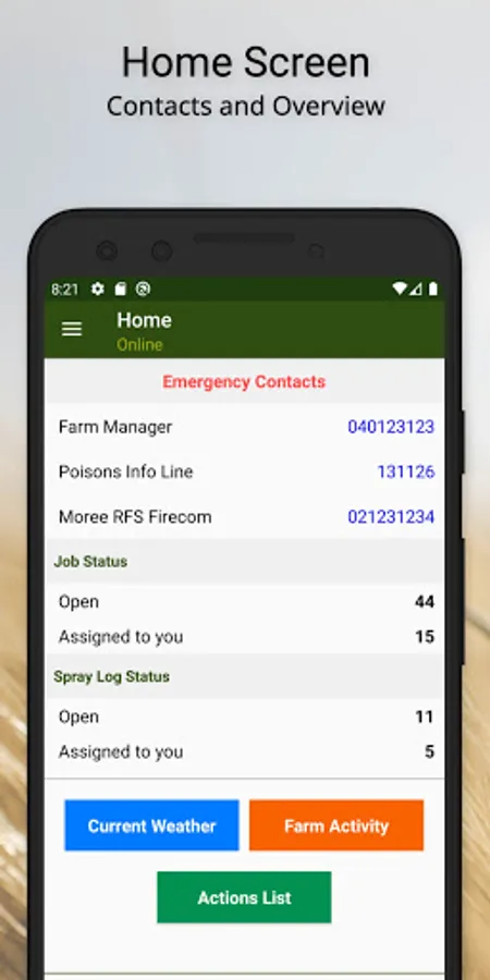 • Fast access to emergency contacts and farm summary information - including a live farm activity feed.