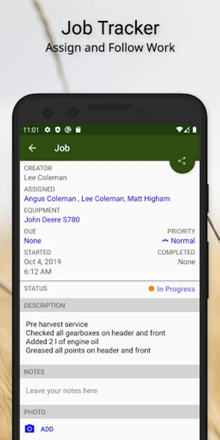 • Jobs - Assign jobs to users; allocate to equipment, paddock, livestock.