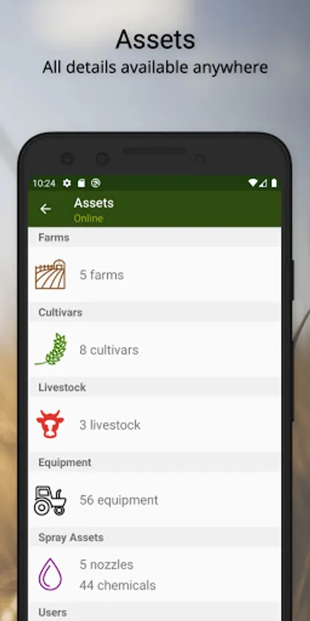 • Manage all of your farm assets - each have a complete history available to you 24/7.