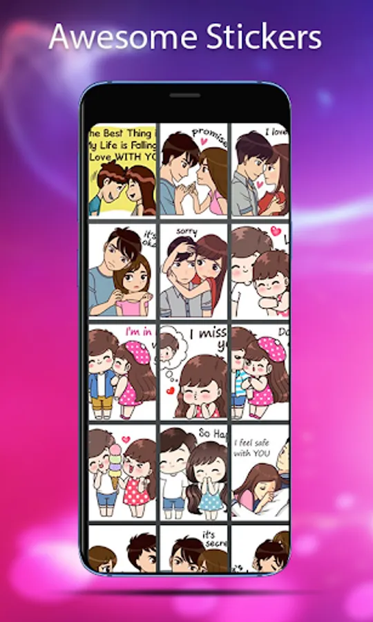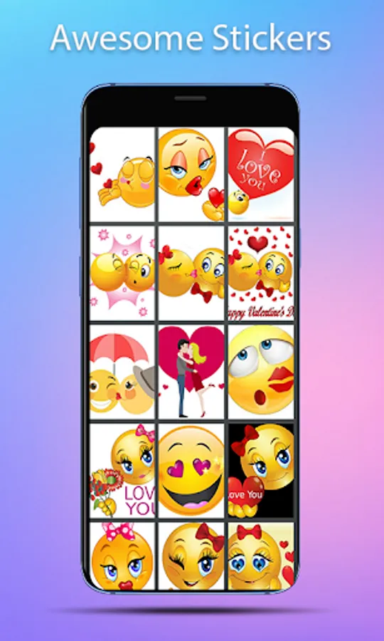 You Will love to have this Latest “All New Stickers“app on your device since all categories of stickers like Love stickers, Romantic stickers, Emojis expression stickers are of beautiful where you can feel All elegant collection of Emoji and love emoticons to share loved ones in Social Media.