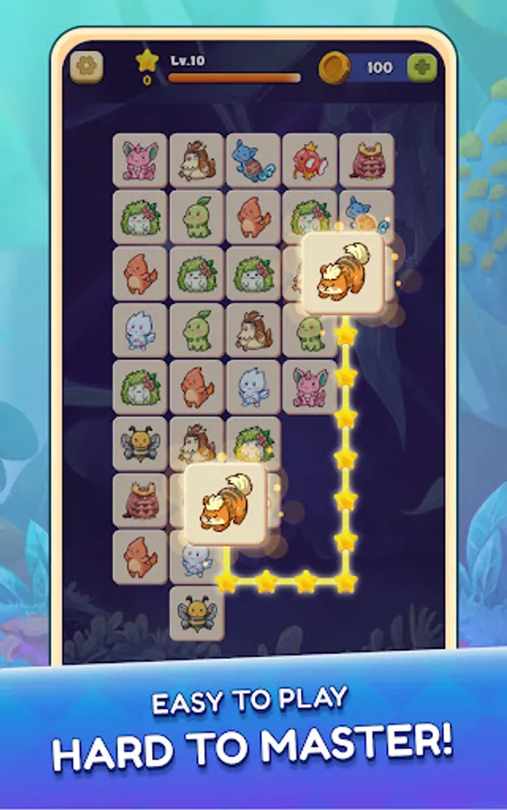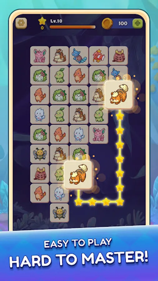 - Link 2 identical animal Tiles from one line to 3 lines to clear them.