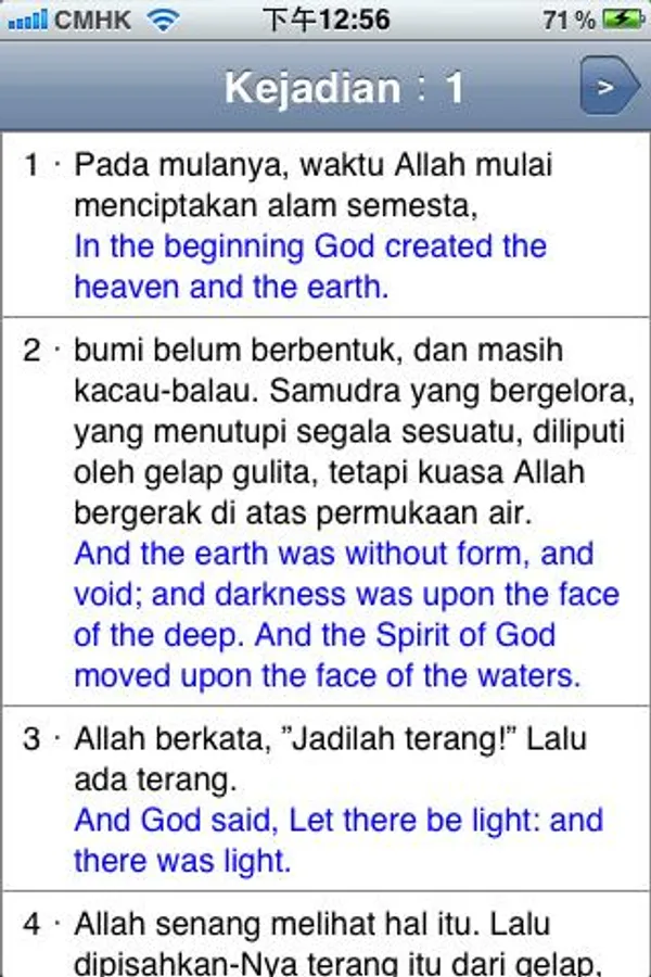 Bacaan Alkitab perangkat lunak bersama dengan dukungan penuh untuk Bahasa dan Inggris bilingual.
