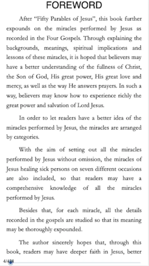 After “Fifty Parables of Jesus”, this book further expounds on the miracles performed by Jesus as recorded in the Four Gospels. Through explaining the backgrounds, meanings, spiritual implications and lessons of these miracles, it is hoped that believers may have a better understanding of the fullness of Christ, the Son of God, His great power, His great love and mercy, as well as the way He answers prayers. In such a way, believers may know how to experience richly the great power and salvation of Lord Jesus.