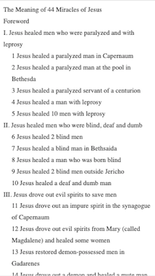 In order to let readers have a better idea of the miracles performed by Jesus, the miracles are arranged by categories.