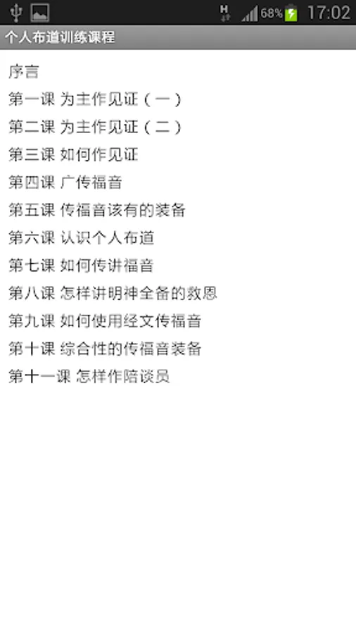 This course consists of eleven lessons. It first discusses the burden of spreading the gospel, and then teaches how to bear witness to the Lord, the equipment that evangelists should have, and how to preach the gospel in detail, and be a counselor. This course can strengthen the burden and equipment of the saints for preaching the gospel, so that they can rely on the Lord to witness the Lord and preach the gospel to unbelievers, so that God the Father can be glorified.
