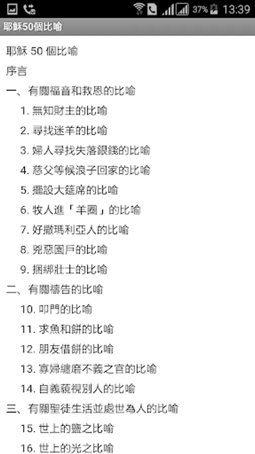 在主耶穌的教訓裏,有一個特點,就是祂常把天國的奧秘、神旨意的奧秘、許多生命之道和神永恆的真理,透過比喻深入淺出地說明出來。如經上所說:「我要開口用比喻,把創世以來所隱藏的事發明出來。」(太十三35)所以,聖徒透過耶穌所講的比喻,就能曉得神旨意的奧秘和耶穌主要的教訓。