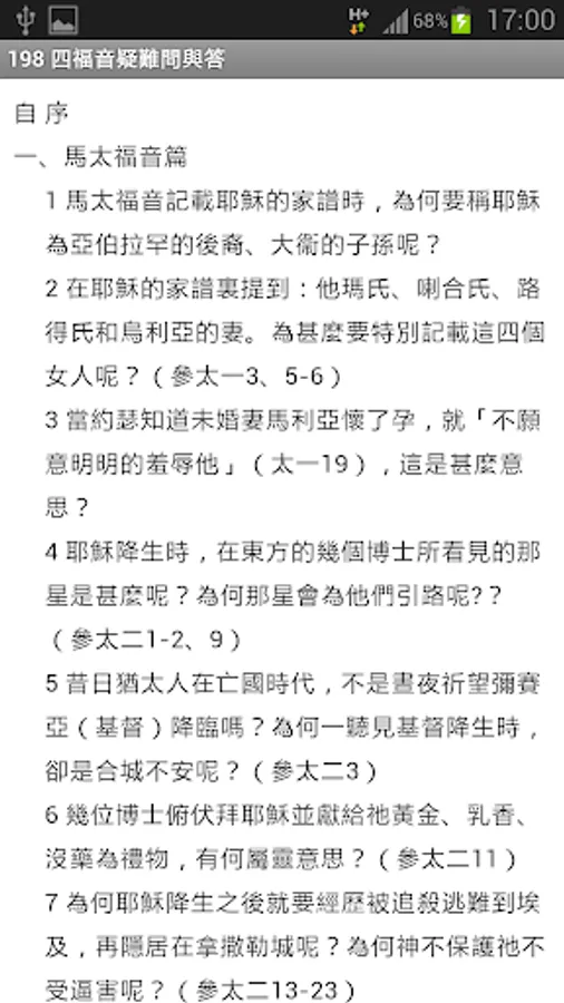 The four gospels in the Bible fully reveal and witness Jesus Christ. This book lists and answers the 198 questions in the four Gospels of Matthew, Mark, Luke, and John in detail. According to the principle of exegesis, clear and easy to read the obstacles to the Bible, bring out the light of God's word, and make believers know the Lord, Understanding God's will, and being able to receive the richness of the Lord's Word by faith, enables spiritual growth and service.