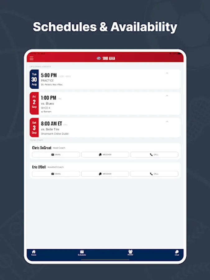 Team Staff - Easily access information to communicate with your coaches and team managers.