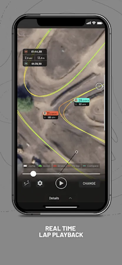 • Lap comparison: compare two laps head-to-head in a real-time animation