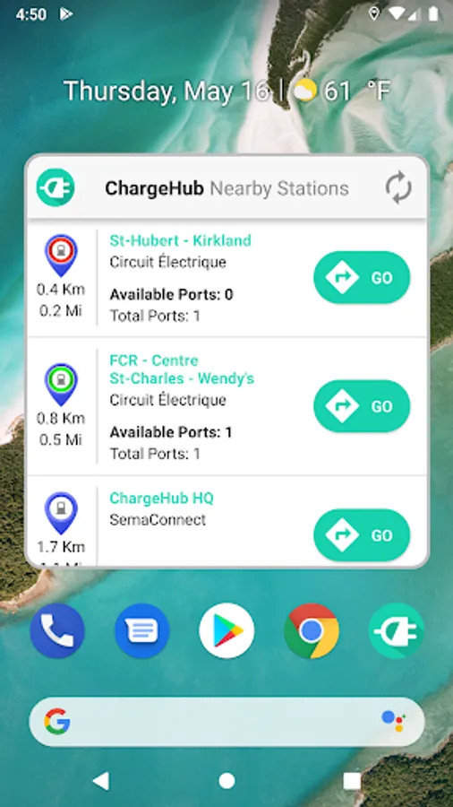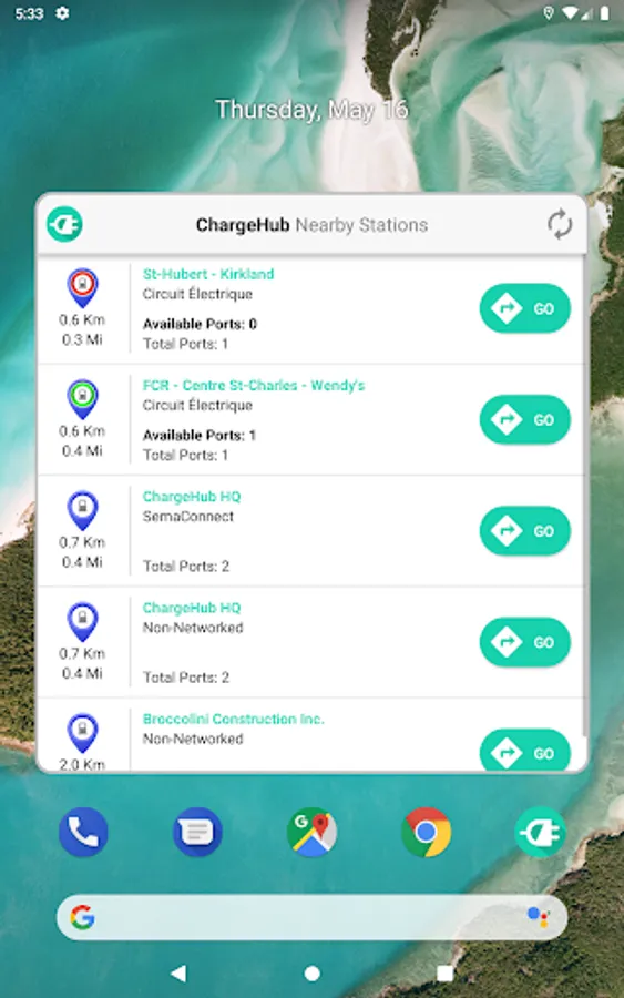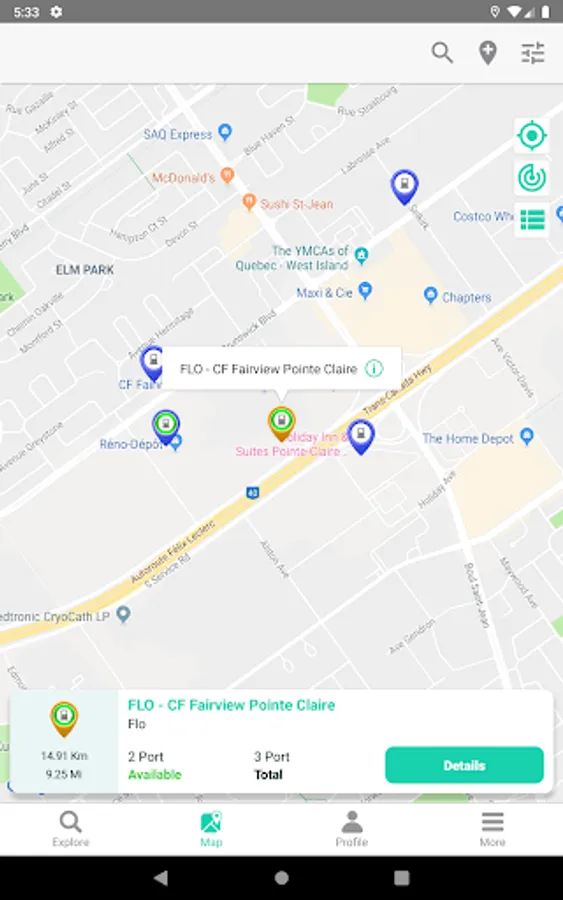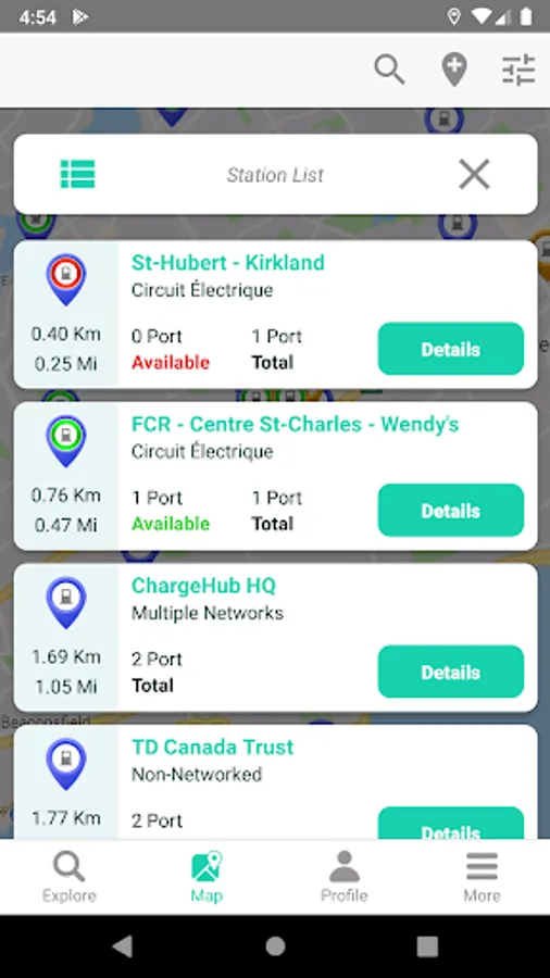 -Get color coded live availability data from EV charging stations in the following networks: Chargepoint, Blink, Hydro Quebec's Circuit Electrique and AddEnergie Flo