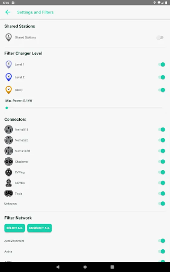-Filter and search EV charging stations to only display the ones you want (by network, by charging level, etc)