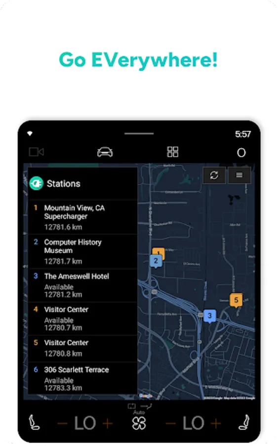-See whats around while you recharge. Plugin your electric car & see what restaurants, hotels, parks, places are around your EV or Tesla charging station