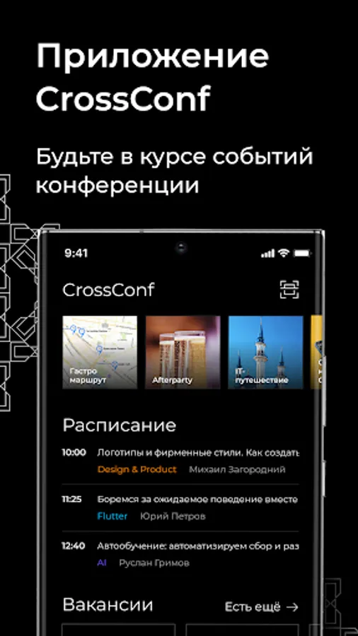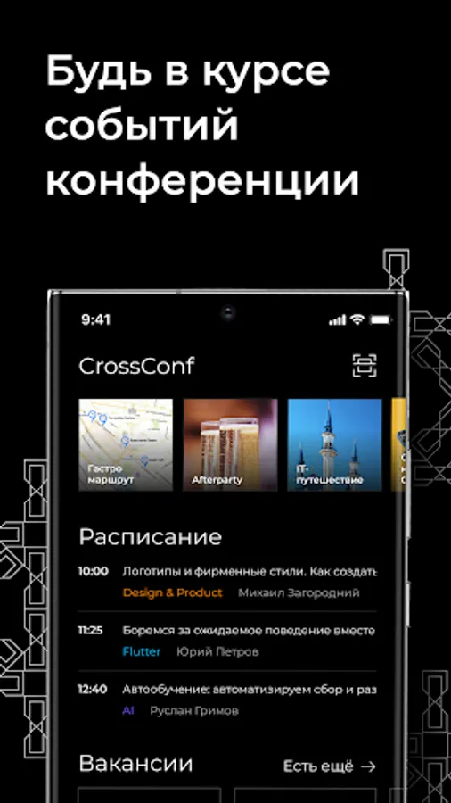 Log in to the CrossConf conference application to see all the topics of the reports, the names of the speakers and make your individual visit plan.