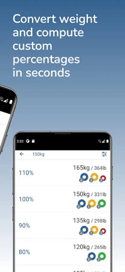 Not enough sweat? Let's lift! View your 1rep max percentages with a single click. Barbell math is hard, so just use the suggested barbell composition and move the iron!