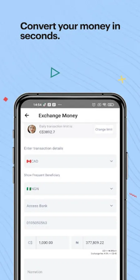 • Convert between currencies instantly, at the real exchange rate, for a super-low fee