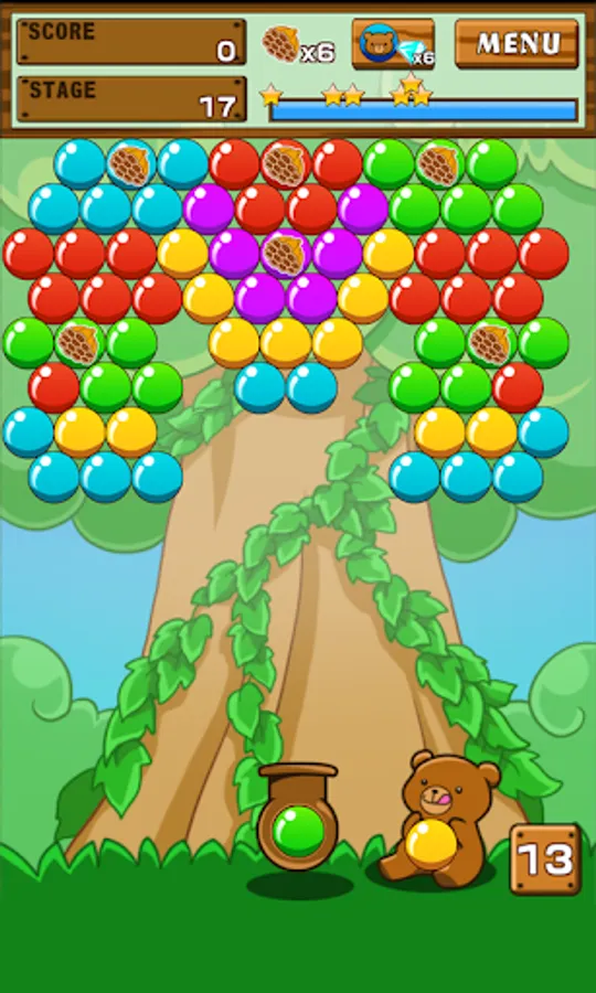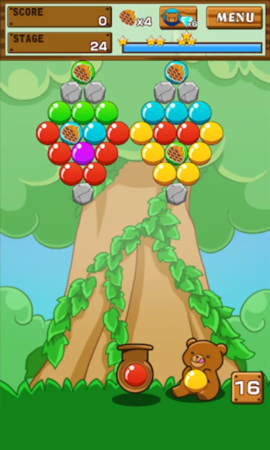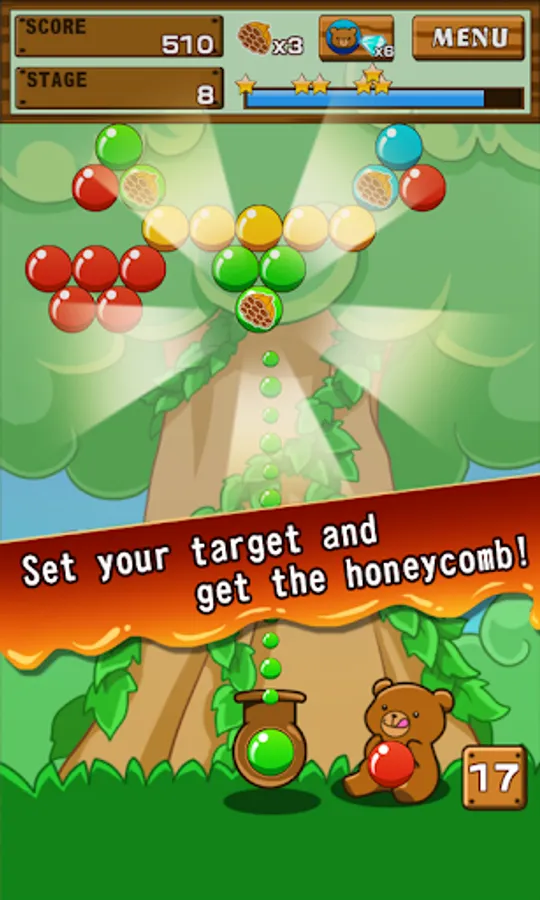 Every stage has fixed number of "Beehive" bubbles placed. You need to drop down all the beehive bubbles to clear the stage!