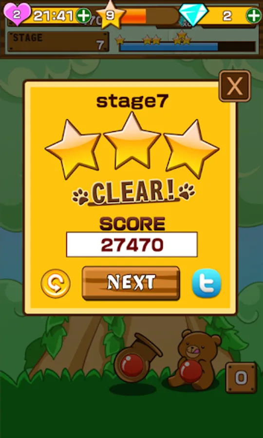 How far can you proceed from your latest cleared stage of stage mode? Increase your score by bursting more and more bubbles.