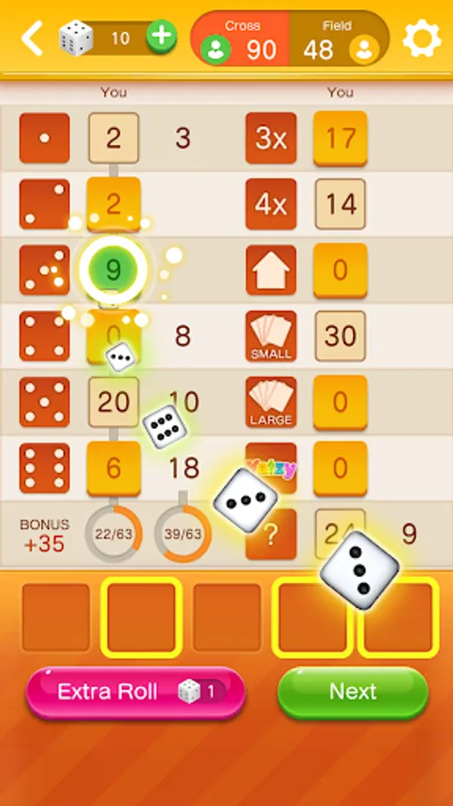 - Need one more to complete the desired combination? Use Extra Dice to reroll one additional time!