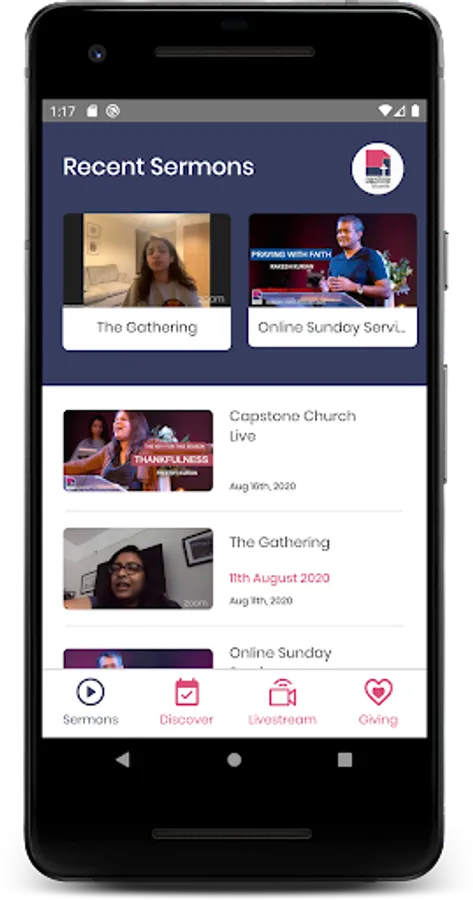 * Capstone Church app lets you keep track of all upcoming live streams and add new events to your calendar.