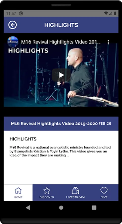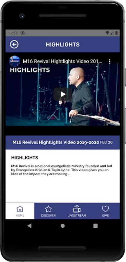 -Stream all services and events from M16 Revival live on the app and never miss a chance to get encouraged even on the move.