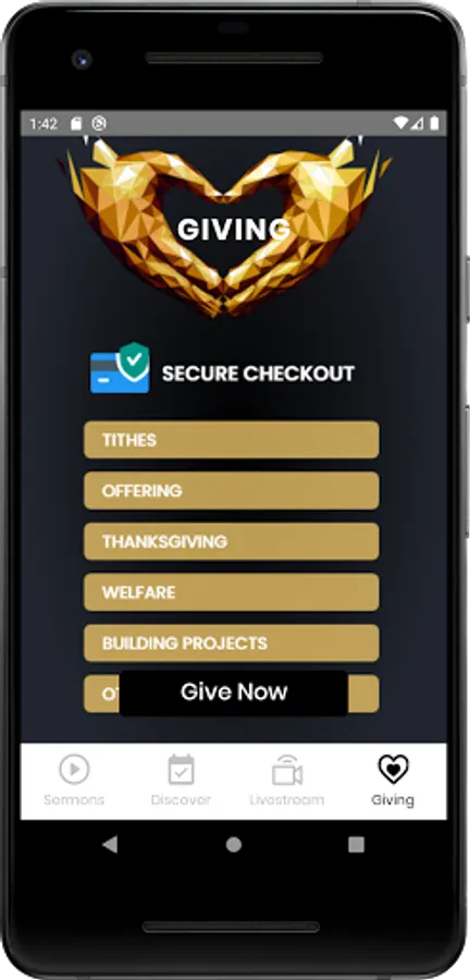 *Give anytime and from anywhere through the custom In-app Giving