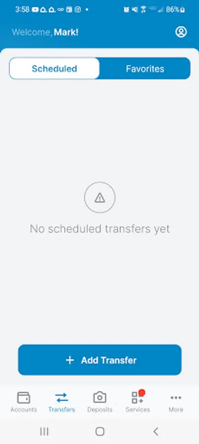 · Transfers: account to account, scheduled, pending ACH and check withdrawal transfers are available