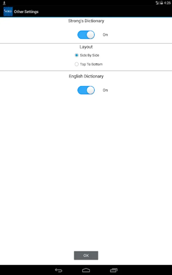 If on a smaller device, select "top to bottom" on "other settings" screen to put the verses from other bible versions on your screen in an easy to read fashion.