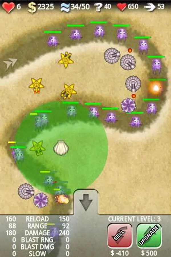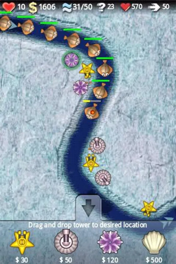 Use your judgement to strategically place a choice of lethal gun turrets on the sea bed and try your best to despatch the advancing hordes.