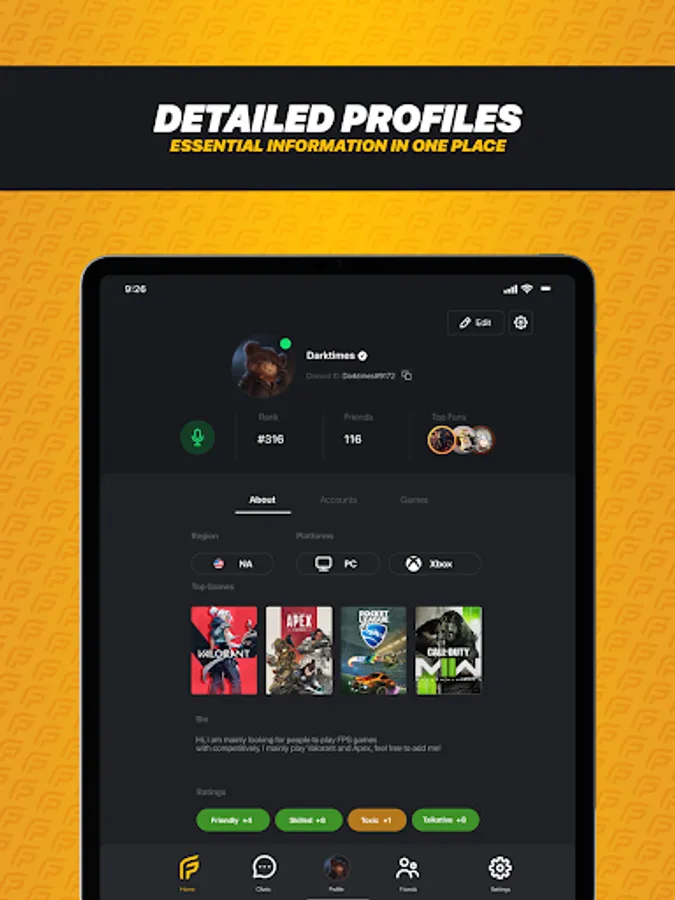 Looking for a group to play your favorite games with can be daunting, but PlayerFinder is here to make it easy. Developed by gamers, PlayerFinder connects you with like-minded players to build long-lasting friendships and increase your chances of winning your next game.