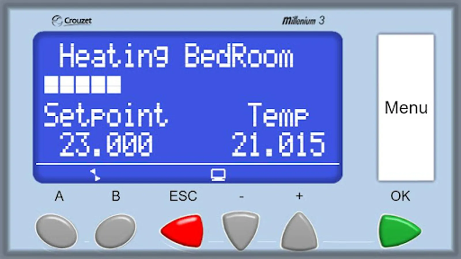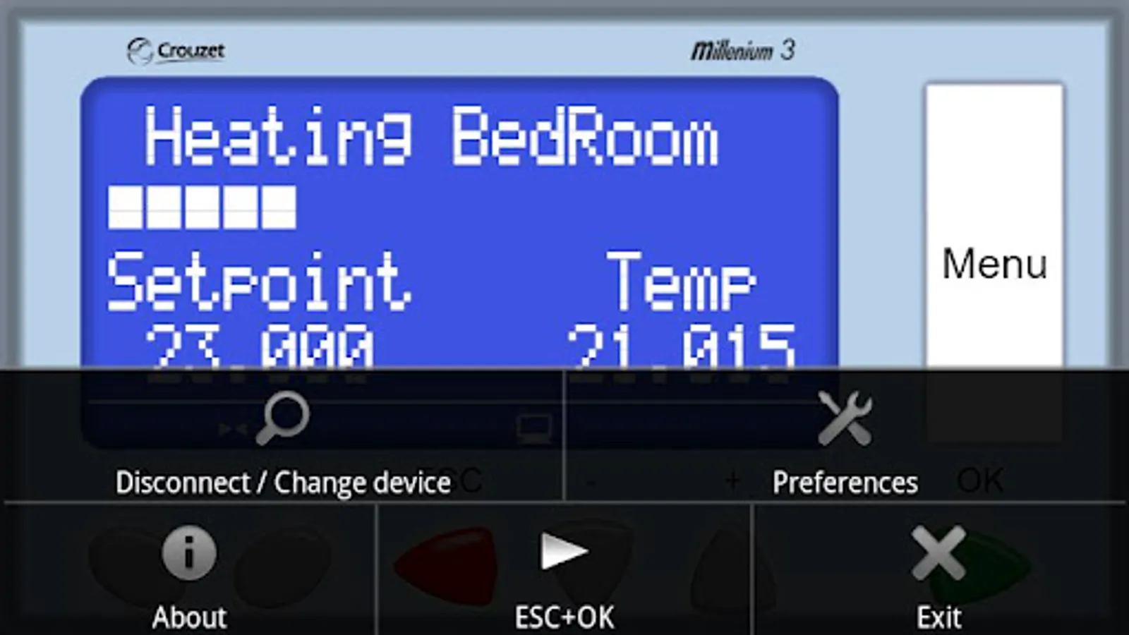 Thanks to the Millenium 3 Virtual Display application, reproduce the display and functionalities of your Crouzet Millenium 3 device on a smartphone or a tablet through a Bluetooth® interface (Serial Port Profile protocol / Bluetooth® key to connect to the logic controler). It enables you to remotely monitor your application (approximately 10 m line of sight) and thus ensures that your system works properly (ESC and OK keys are disabled).