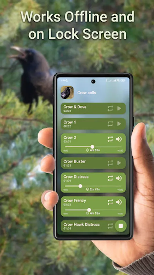 Crow hunting calls is a app with a variety of high quality crow calls. Get hunting calls and harvest a productive season.