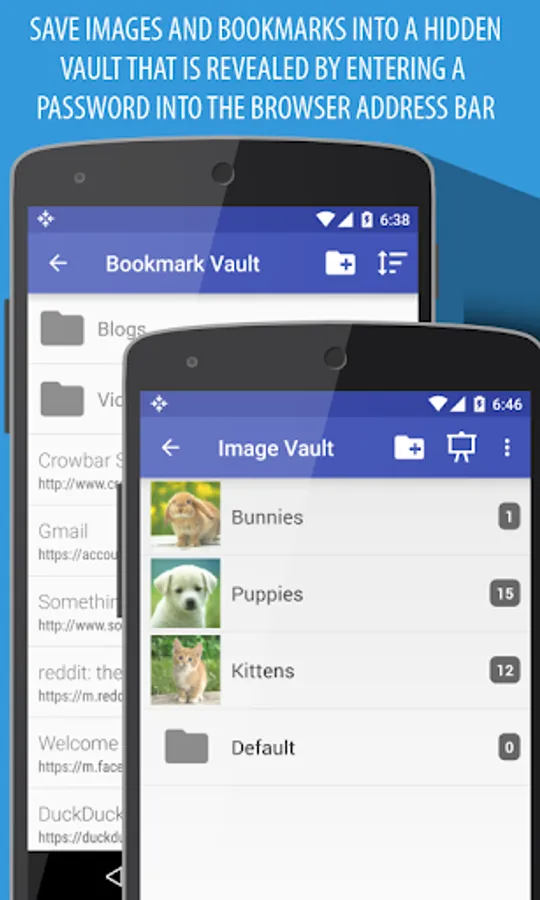 Download images from the web and save bookmarks into a hidden, password protected vault