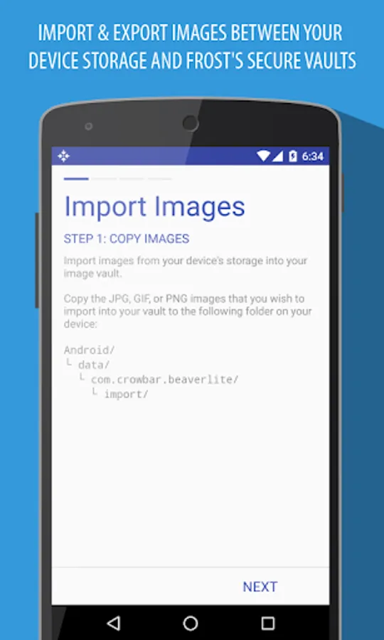 Import or export pictures between your device storage and image vault