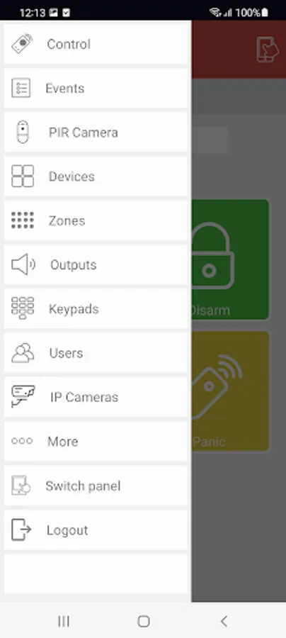 • View and enable, disable or set a timer for the outputs of your home • View status and control zones in the system