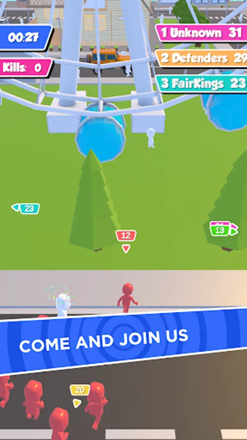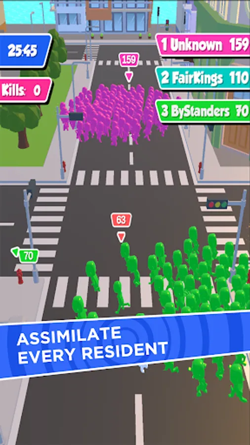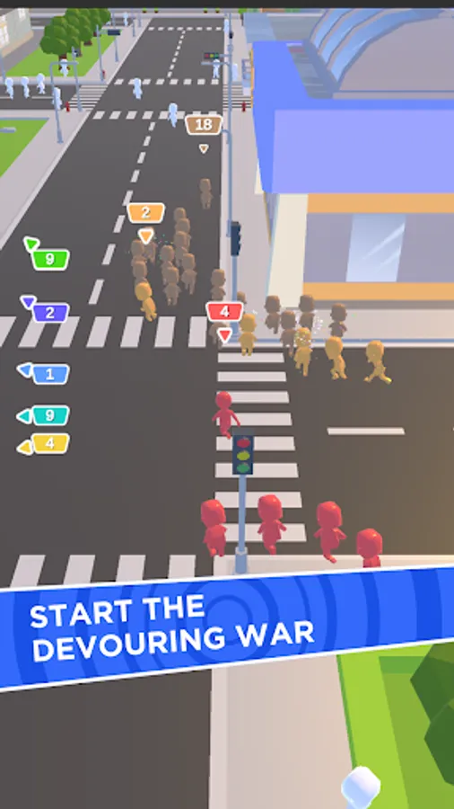 Gather all the residents who are wandering around the city at the fastest speed, assimilate them, let them join your team, become your soldiers, and find ways to make your team stronger and stronger. When your team When encountering other teams, only if the number of your team members is greater than the opponent's number, can you destroy the opponent's leader and assimilate his team's members into yours, otherwise you will lose your members and be killed! Run it ,Look for residents in every corner and eliminate opponents.