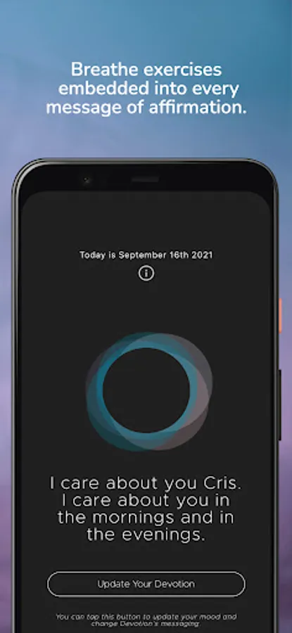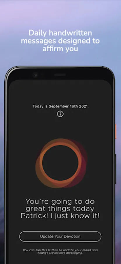 Devotion is a free tool of affirmation from Euphoria (the makers of Solace, Clarity, Bliss, and Windfall), which can intelligently tailor messages based on your gender and your mood.