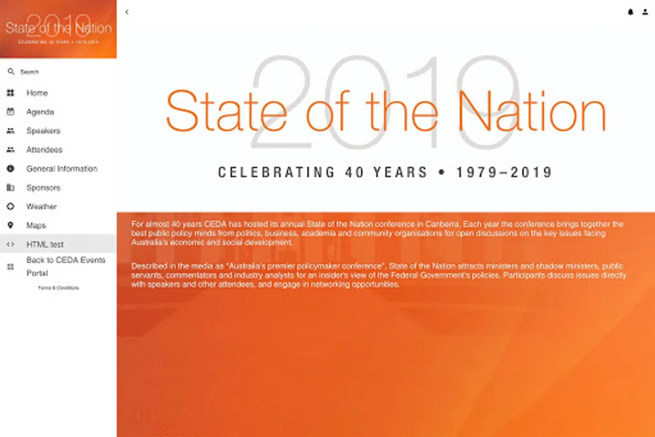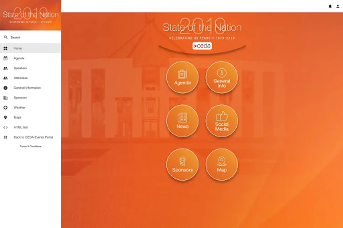 Join leaders, be informed and be part of the discussion at CEDA events with the CEDA Event App. CEDA’s Event app is a great way to stay connected and be engaged, participate in the conversation and ask questions at CEDA events across Australia, as well as catch up with event highlights and news. Features include: • Agendas – access and personalise agendas, take discussion notes, provide session feedback • Interactive Q&A – ask questions to speakers and panellists, vote on your favourite questions • Networking – ability to connect and contact exchange with event and conference attendees • Live polling – participate in audience polling of key topics and issues • Stay social – see what conversation is happening across social media feeds • Alerts – stay up to date with real time alerts and notifications.