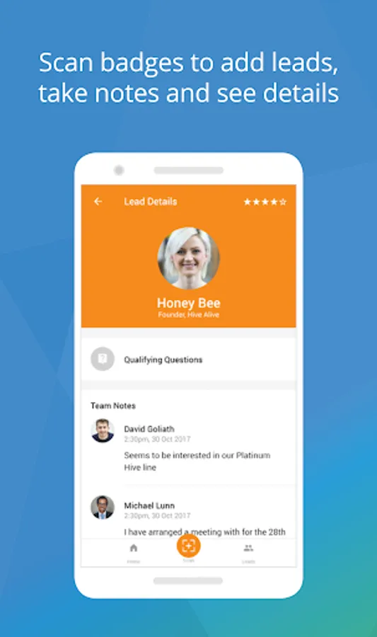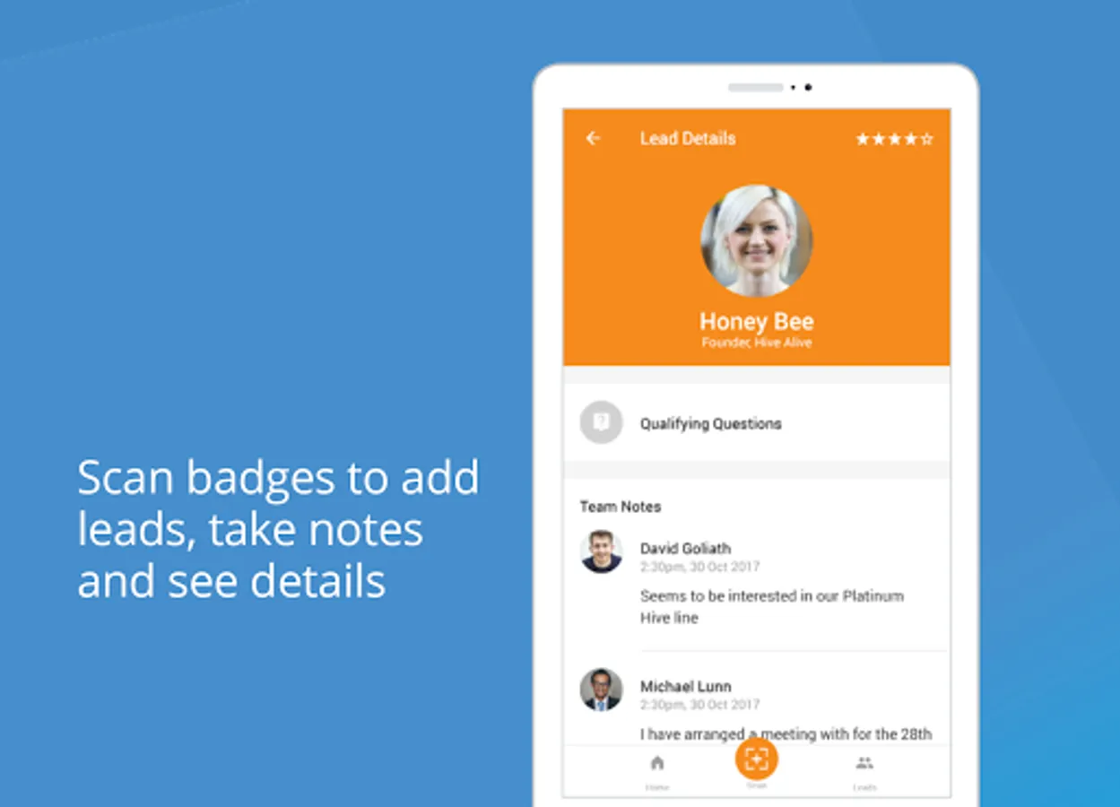 For exhibitors and sponsors to capture leads in real-time using their own android device.