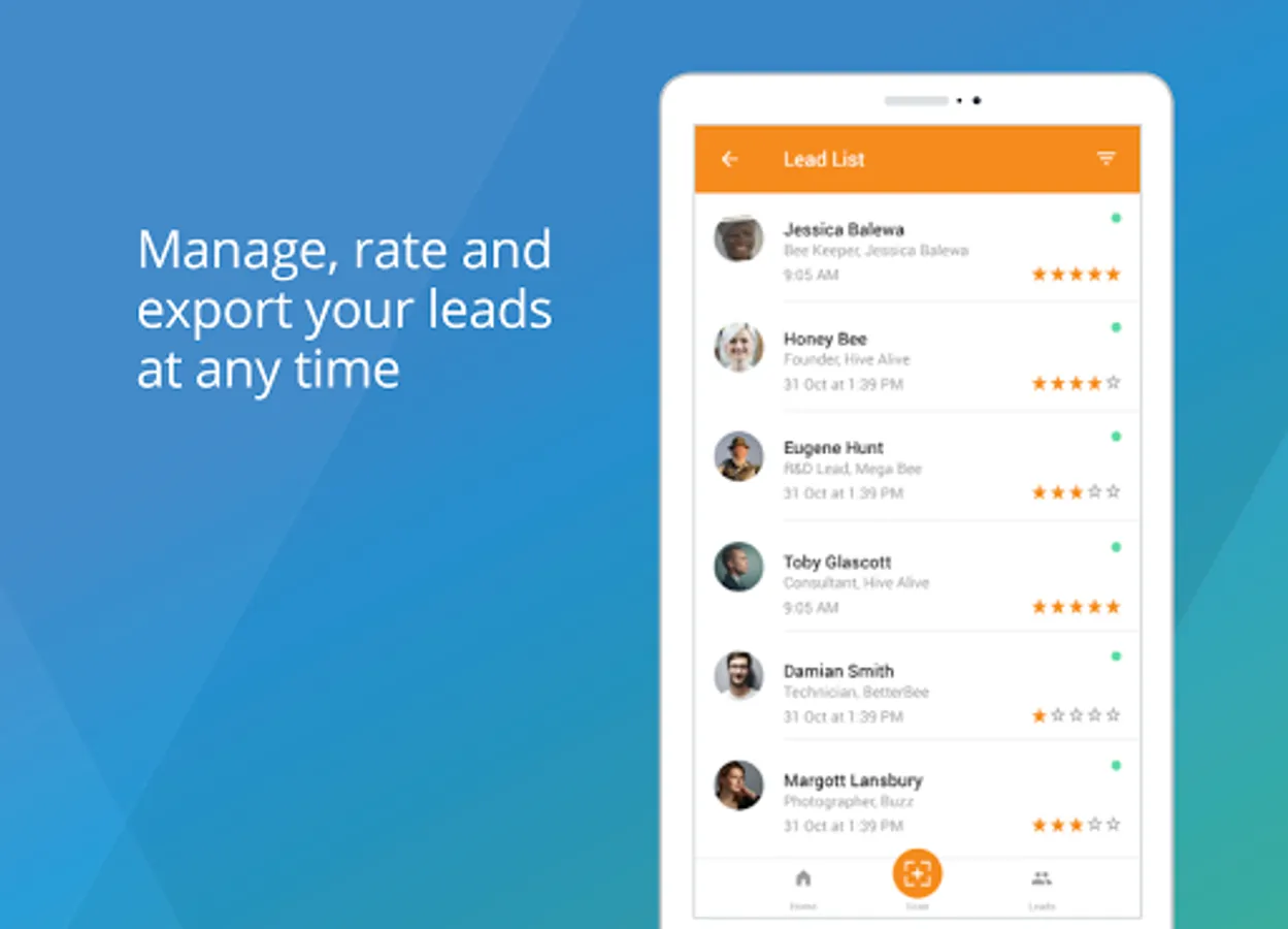 - Search and organise scanned lead list