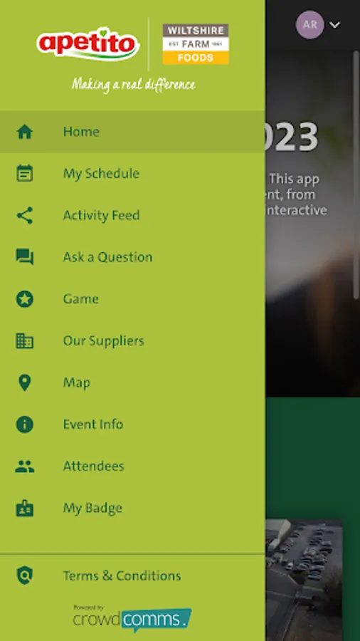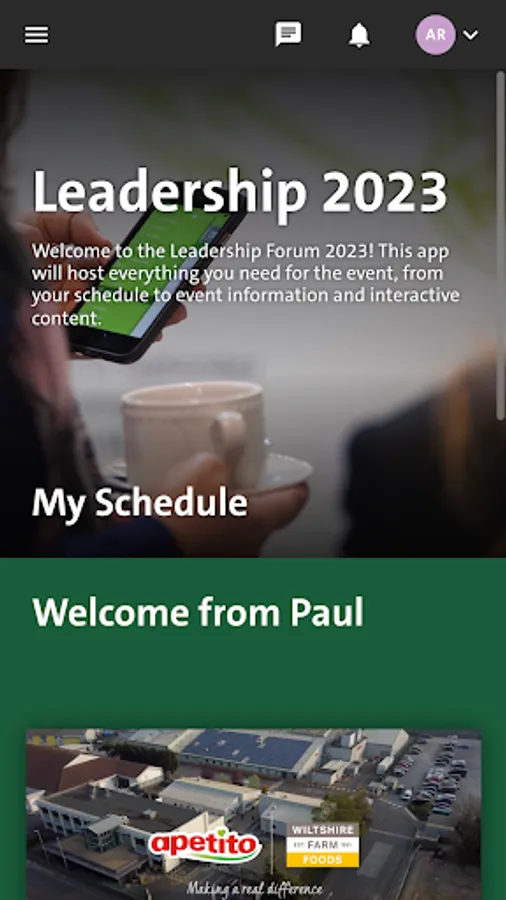 An interactive app for delegates of the apetito | Wiltshire Farm Foods Leadership Forum 2023.
