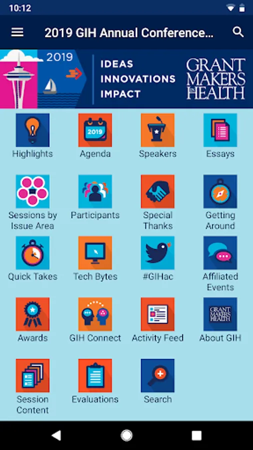 This app is designed to navigate the Grantmakers In Health (GIH) Annual Conference on Health Philanthropy.