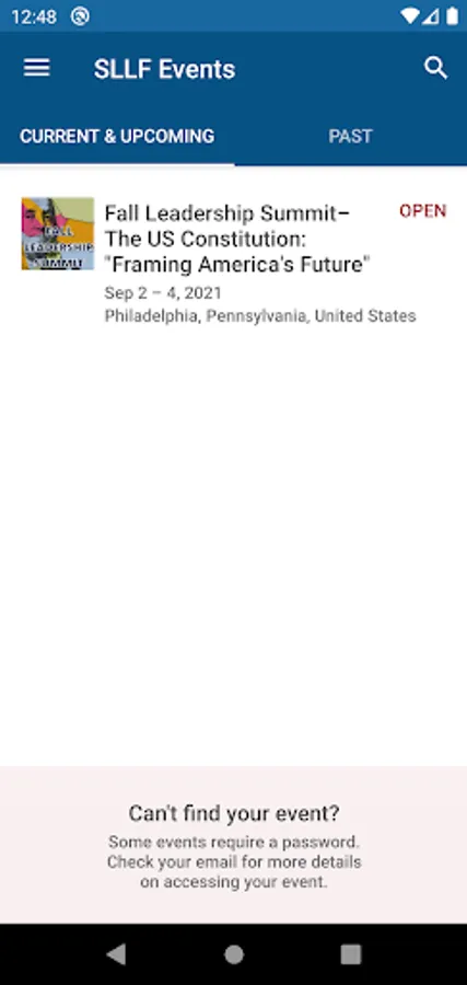 Mobile Event guide for State Legislative Leaders Foundation Events