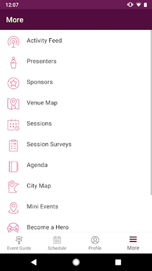 • Profile — create a user profile with your name, photo, title and company, and connect with other attendees at the event