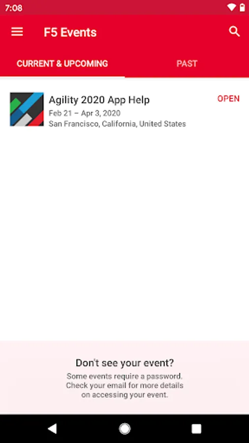Download the F5 Events app for details on F5 hosted events. The app will include details on the agenda, locations and other event specific information. Additionally you will be able to connect with attendees at the F5 hosted event.