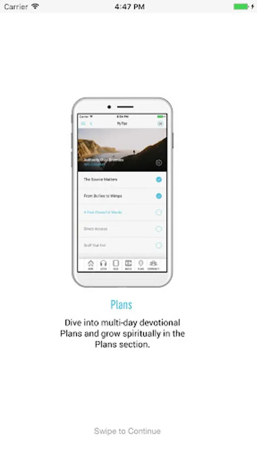 • Plans: Dive into multi-day reading plans and grow spiritually