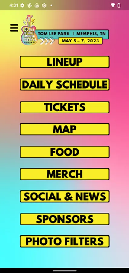 The BSMF 2023 app is your official guide for everything you need to know for Beale Street Music festival. The app helps you organize the lineup, map out an unforgettable weekend, keep tabs on stage times, receive updates before and during the festival, and more!